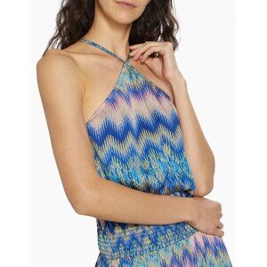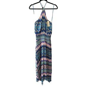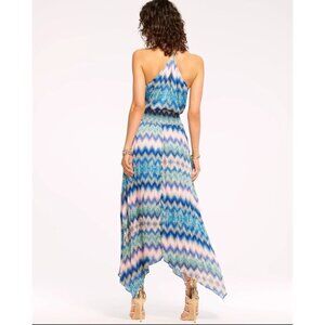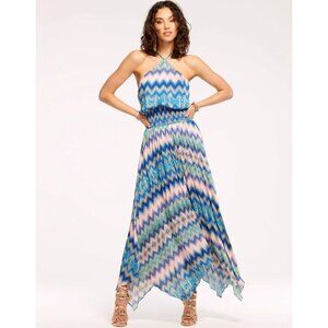 NWT Ramy Brook Giana Chevron Print Halter Maxi Dress Handkerchief Hem, Size M