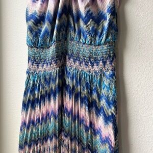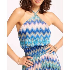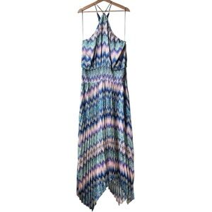 NWT Ramy Brook Giana Halter Maxi Dress Blue Pink Retro Chevron Sz XXL