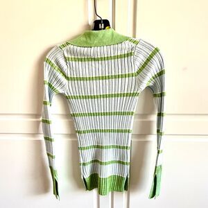 NWT Ramy Brook “Raya” Stripe Knit Button-front Sweater, in light blue and green