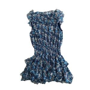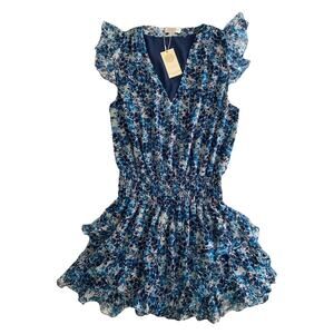 NWT Ramy Brook Simone Floral Print Silk Mini Dress Blue V Neck Sleeveless L