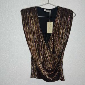 NWT Ramy Brooke Serena Metallic Striped Blouse XS