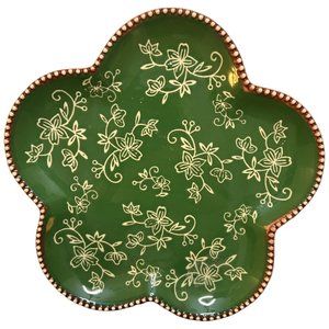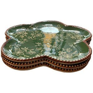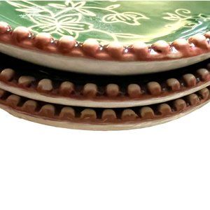 NWT & Rare! 3 TEMPTATIONS by Tara Floral Lace Green Plates Beaded Edge Stoneware