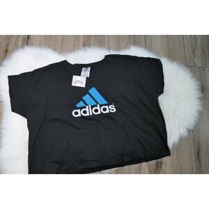 NWT Rare Adidas Spell Out 90s Vintage Black Women's XL Crop Top Half Shirt