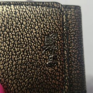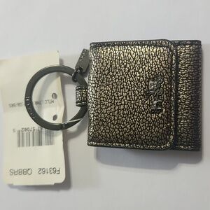 NWT. Beautiful Coach mini photo frame keychain / bag charm made of genuine leather with horse and carriage metal logo.