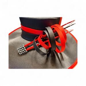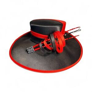 New with tag Whittall & Shon Women’s Large Upbrim Modern Designer Hat With Quills Red/Black