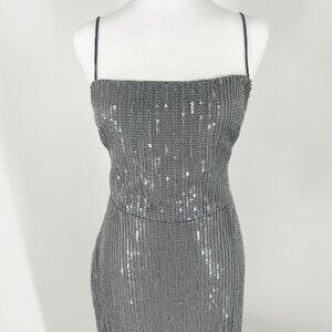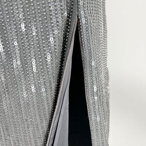 NWT Rasario Silver Sequin Embellished Square Neck Maxi Gown