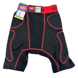NWT Rawlings Youth Small Baseball Sliding Shorts Padded Sides Black Red Pull On