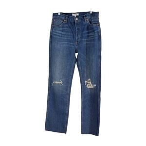 Re/Done High Rise loose distressed broken blue jeans, dark blue wash. New with tags, no flaws. Size 30