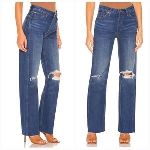 NWT Re/Done High Rise Loose Destroyed Broken Blue Jeans