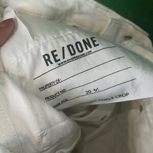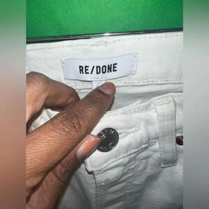 Nwt white distressed re/done jeans size 26. There is a faint stain on these jeans. Looks like it can be washed out. I am unsure if there is any other faint stains but that is all I see..see photos.