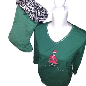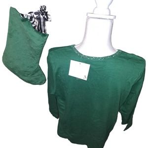 NWT- Ready for Gifting! Sz M Quaker Factory Mrs Claus Green & matching Stocking