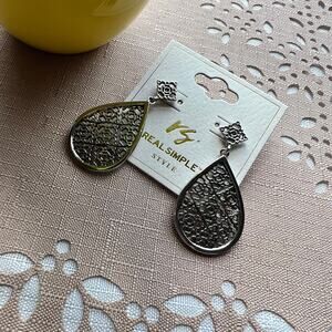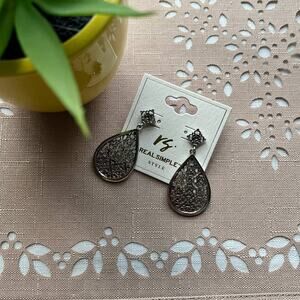 NWT Real Simple Style "Anna" Rhodium Silver Teardrop Dangle Earrings