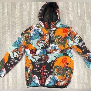 NWT Reason Clothing Kanji Japan Print Dragon Half-Zip Anorak Size Medium