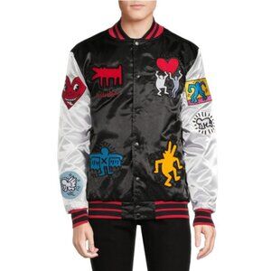 NWT - Reason Men’s Embroidery Patchwork Satin Varsity Jacket - Size Large