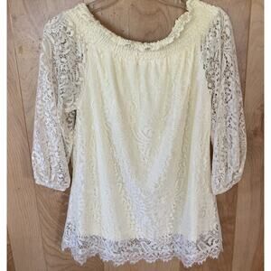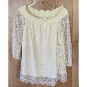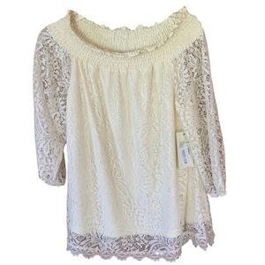 NWT Reba Summer Escapes Cream Lace Off Shoulder Top Ladies Small S