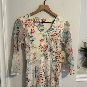 I'm in love with this super stunning new with tags Reba white blue pink floral embroidered v neck long sleeve midi to maxi dress
