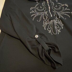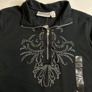 NWT Rebecca Malone Large Caviar 3/4 Sleeve Blouse with Embellishments Zipper