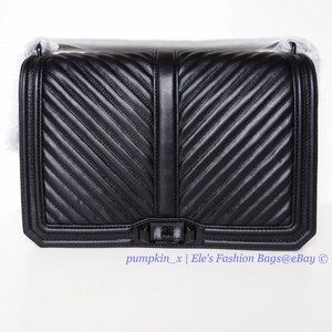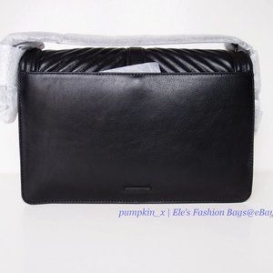 NWT Rebecca Minkoff Chevron Jumbo Quilted Leather Shoulder Bag BLACK BLACK AUTH!