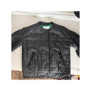 NWT Rebecca Minkoff Faux Leather Black Square Quilted Racer Jacket Women's Small