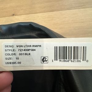 NWT - Rebecca Taylor Black Vegan Leather Romper - Women's 10