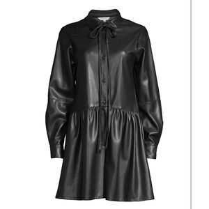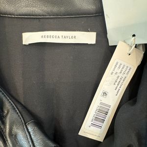 Brand new with tags! Rebecca Taylor vegan leather romper in a women's size 10. Shirtdress style with a gathered waist make this is a chic and versatile outfit. Romper shorts with hidden side pockets. Slips on with zipper and button front closures. Oversized shorts make it look like a skirt and hanging attached strap detail by the collar. Great piece for anyone!