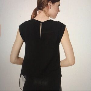 NWT! Rebecca Taylor Charlie Black Illusion Silk Sleeveless Blouse Size 0