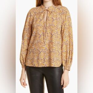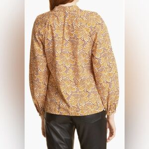 Elevate your wardrobe with this stylish floral print top. Featuring a vibrant yellow and purple design, this top is perfect for any occasion. Pair it with your favorite jeans or skirt for a chic look.