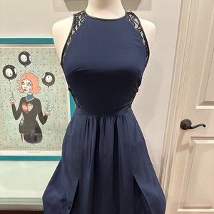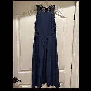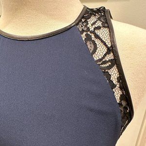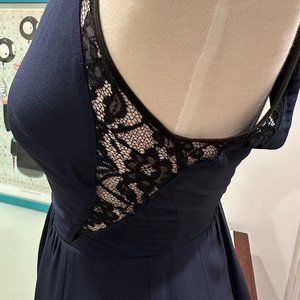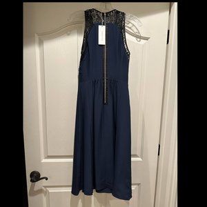 NWT - Rebecca Taylor - Navy Blue Maxi Dress w/ black leather & lace trim Size: 4