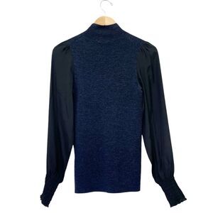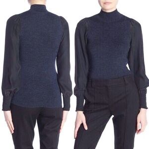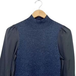 NWT Rebecca Taylor Size Small Merino Wool Mockneck Pullover Navy Blue & Black