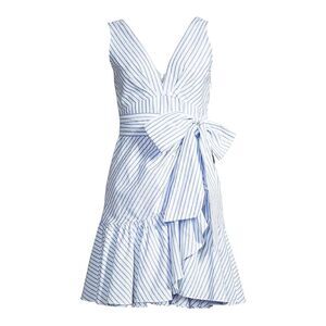 NWT Rebecca Taylor Women's Sleeveless Stripe Wrap Dress | Milk Sky, Size 8