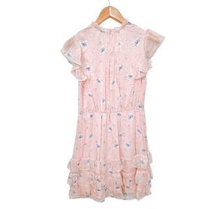 NWT Rebecca Taylor Silk Ruffle V Neck Mini Dress Pastel Pink Floral size S