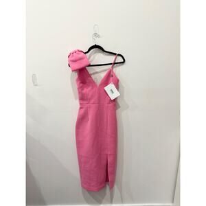 NWT Rebecca Valance Love Bow Sleeveles V-Neck Midi Sheath Dress Pink Women's 6