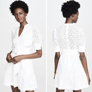 NWT Rebecca Vallance Valentina Anglaise White Heart Eyelet Mini Dress Size 8