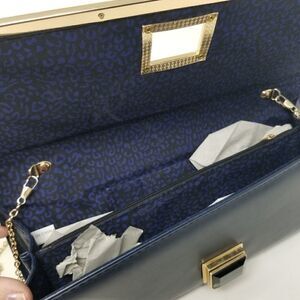 NWT. Rebecca and Rifka bag with chain and herringbone design. On front of bag, twist jewel to open. Fun! Approximate measurements are 13" x 5" x 1 1/2".