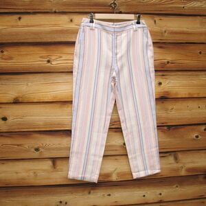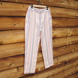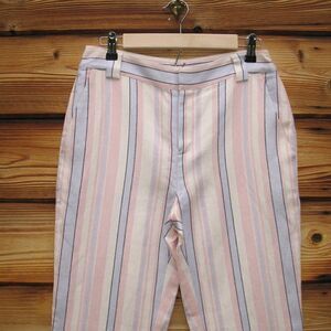 Rebecca Minkoff NWT Womens Pants Striped Linen Blend Ginger Cropped Pink Blue Linen
