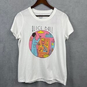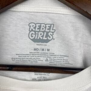 Description: Rebel Girls Alice Ball T-Shirt, Juniors size Medium, white with graphic, short sleeve, crew neck, 100% cotton
