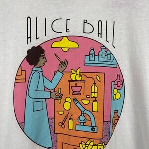 NWT Rebel Girls Graphic Tee Alice Ball Juniors SZ M White Crew Neck Scientist