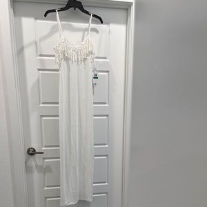 (NWT) Rebel Sky Juniors Cream Long Fringed Swimsuit Cover Up Maxi Dress Size L