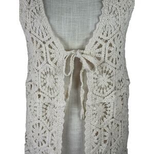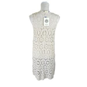 NWT Rebellion Again Openwork Crochet Duster Vest Womens Small Cream Boho Prairie