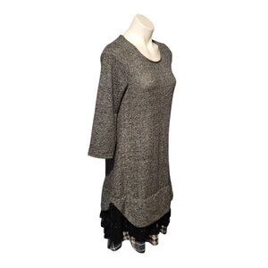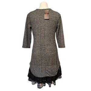 NWT Reborn Charcoal French Terry Plaid Contrast Tunic Size Large Boutique