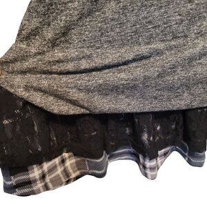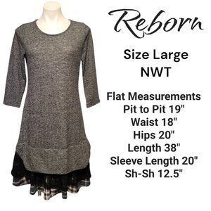 **Reborn Gray Knit Dress with Plaid and Lace Hem, Size Large, NWT**