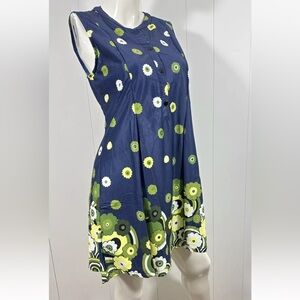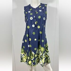 NWT Reborn Womens Sz M Pleated Sleeveless Blue A Line Dress W Green Floral