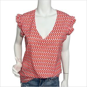 NWT Recycled Orange Graphic Print V-Neck Ruffle Sleeve Top -- L