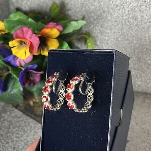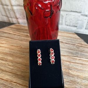 NWT Red Austrian Crystal Hoop Earrings Stainless Steel