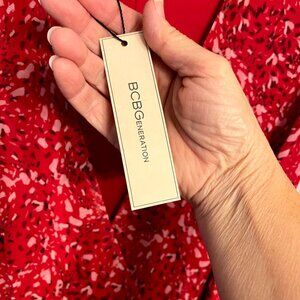 NWT Red BCBGeneration Red Floral Long Sleeve Wrap Dress Size 16 Mesh