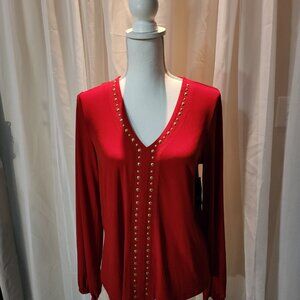 NWT- Red Blouse with Gold Studs