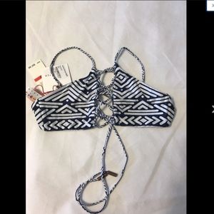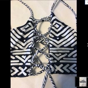 - T spaghetti straps - Lace-up detail down mid bust - Non- Padded triangle cups - Side boning - Adjustable tie closure at back - Reversible aztec design allover - Imported