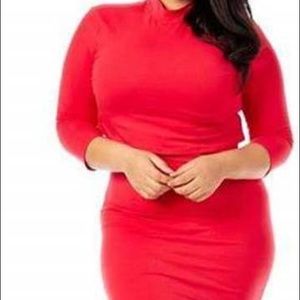 Red Cut Off Crop Look Shapely Dress With Keyhole Back. Comfortable dress that is flattered fitting to draw attention when you enter a room. 3X (18/20)