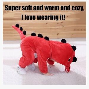 Adorable red dinosaur costume for kids. Perfect for playtime and parties. Comfortable and easy to wear.
