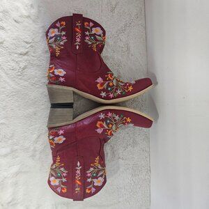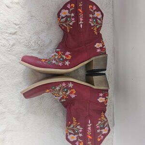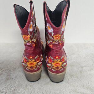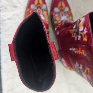 NWT Red Embroidered Floral Faux Leather Cowgirl Boho Snip Toe Bootie 39 (8)